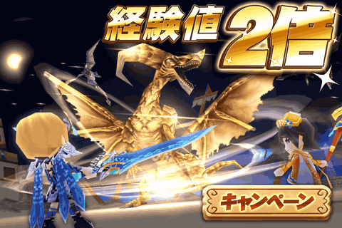 本キャンペーンにつきまして、当初[経験値1.5倍キャンペーン]とお知らせしておりましたが、 こちらは誤った表記で、正しくは[経験値2倍キャンペーン]となります。