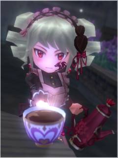 メイド風衣装の組み合わせと、お茶を淹れているシチュエーションがよく表現されておる。
