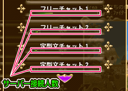 快適な状況かどうかを判断するには、チャットサーバー表示の下にある接続者数を表わすバーを、現在のサーバーと選択先のサーバーとで比較し、