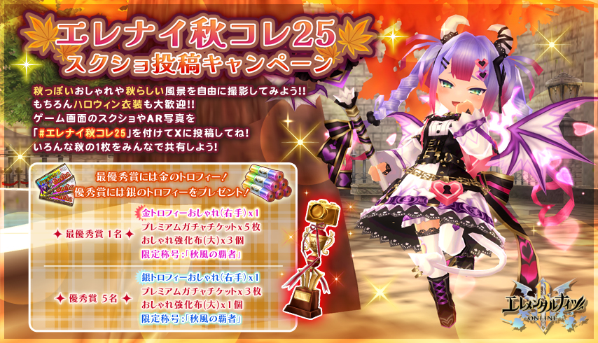 ゲーム内で撮影したスクリーンショットを、ハッシュタグ「#エレナイ秋コレ25」を付けてポスト!