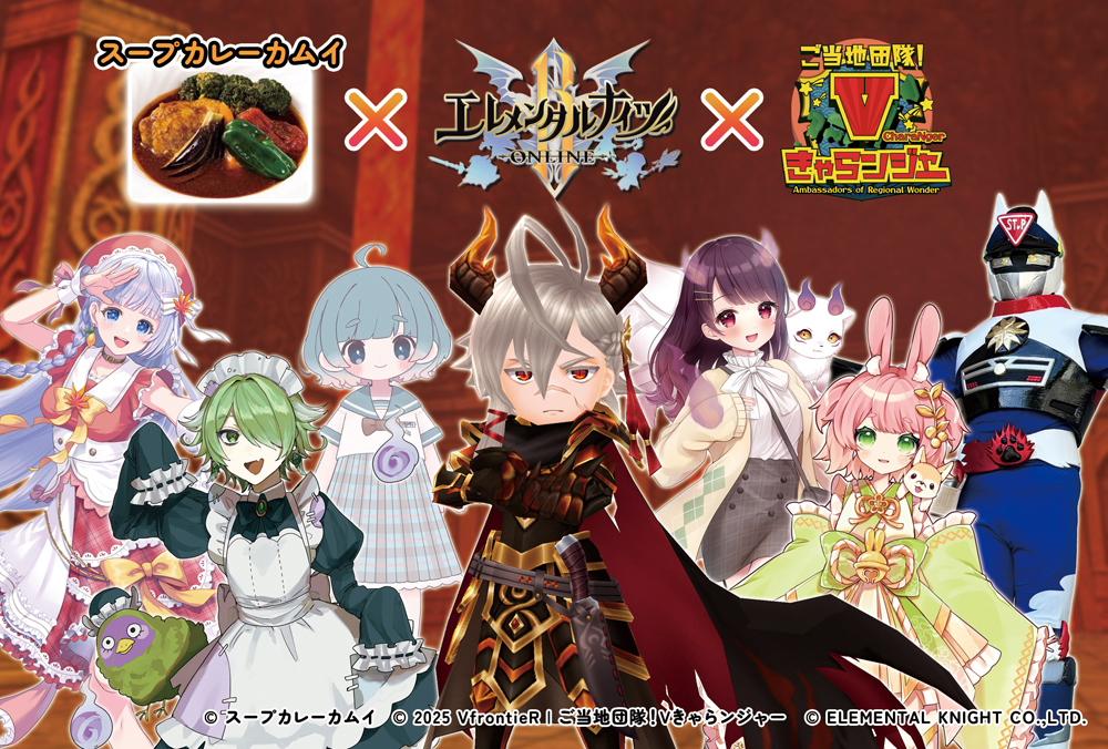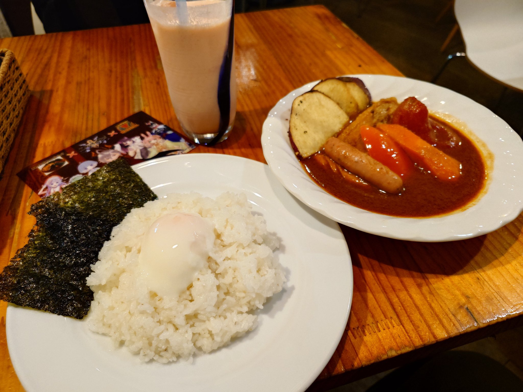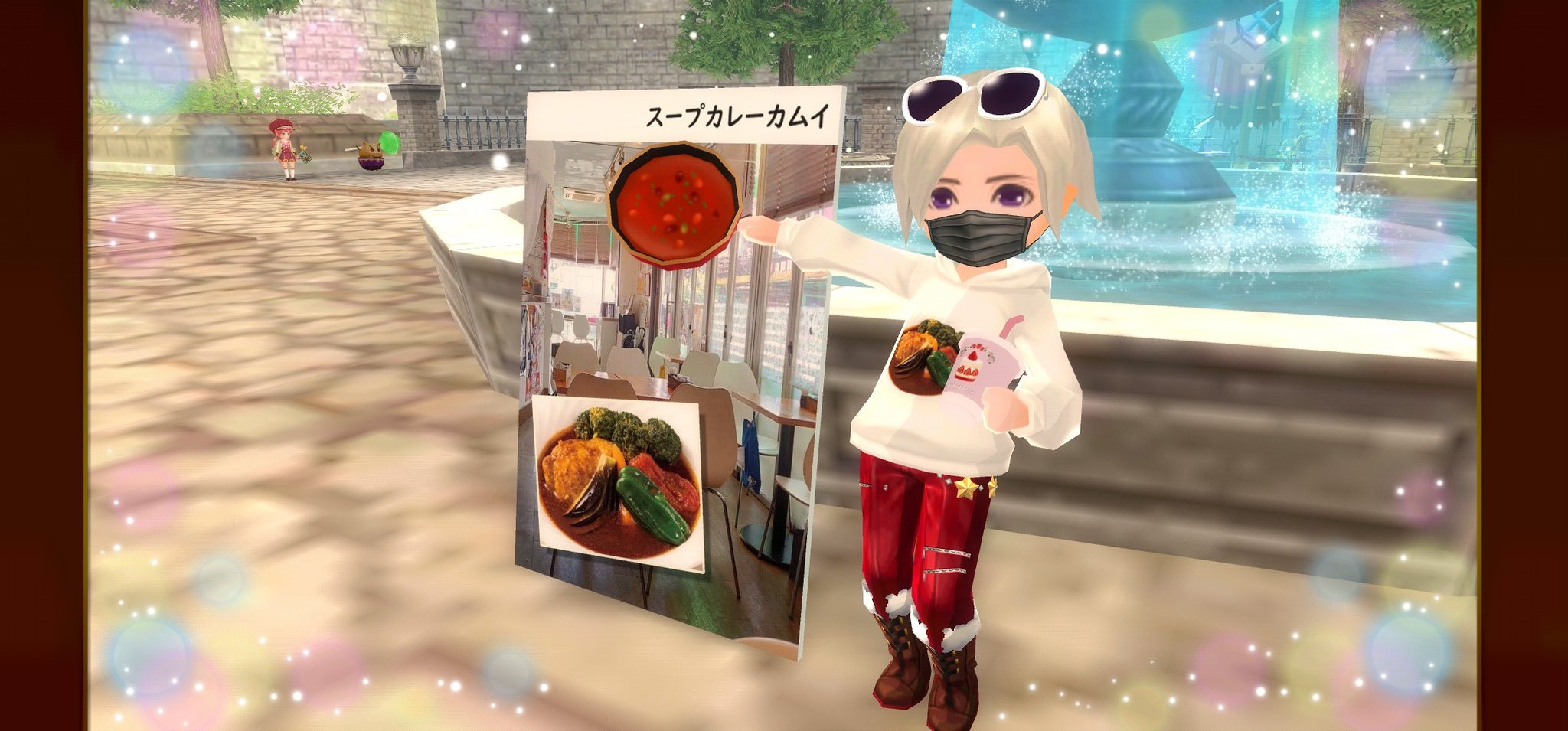 ゲーム内で「スープカレーカムイ」パネルを入れたスクリーンショット、またはコラボカレーの写真を